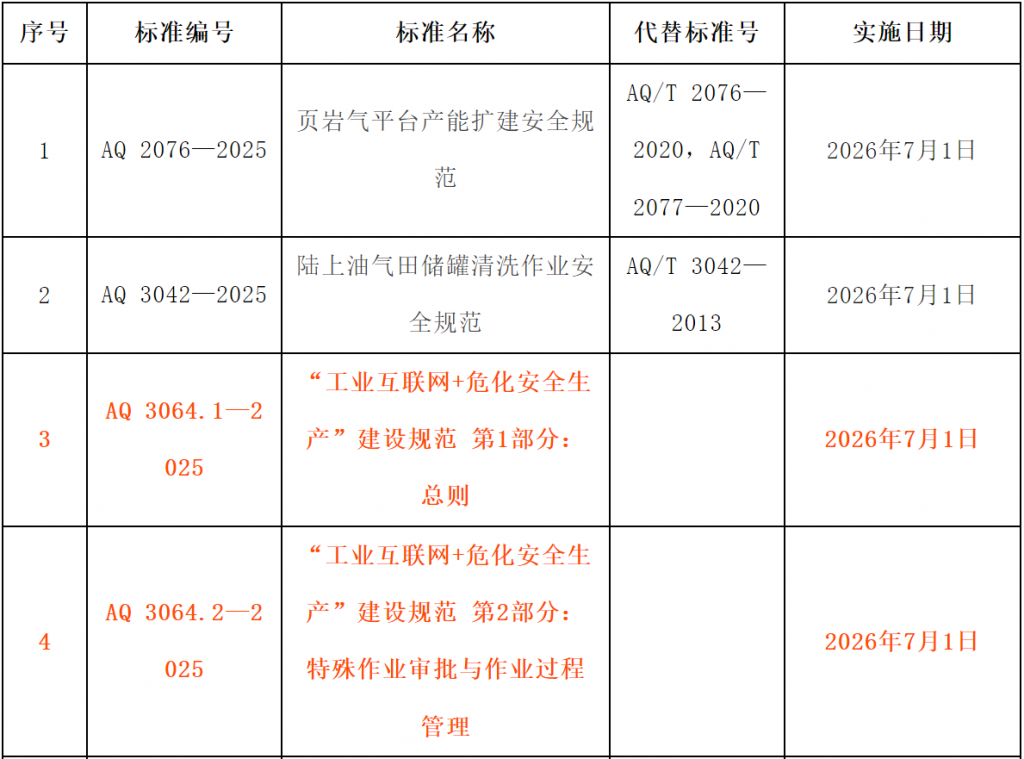 中華人民共和國應急管理部批準《頁巖氣平臺產能擴建安全規范》等10項行業標準(標準文本附后),現予公布。